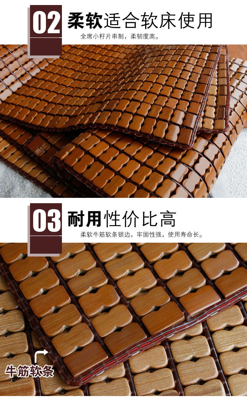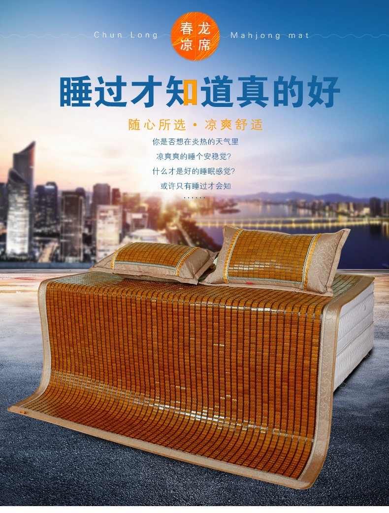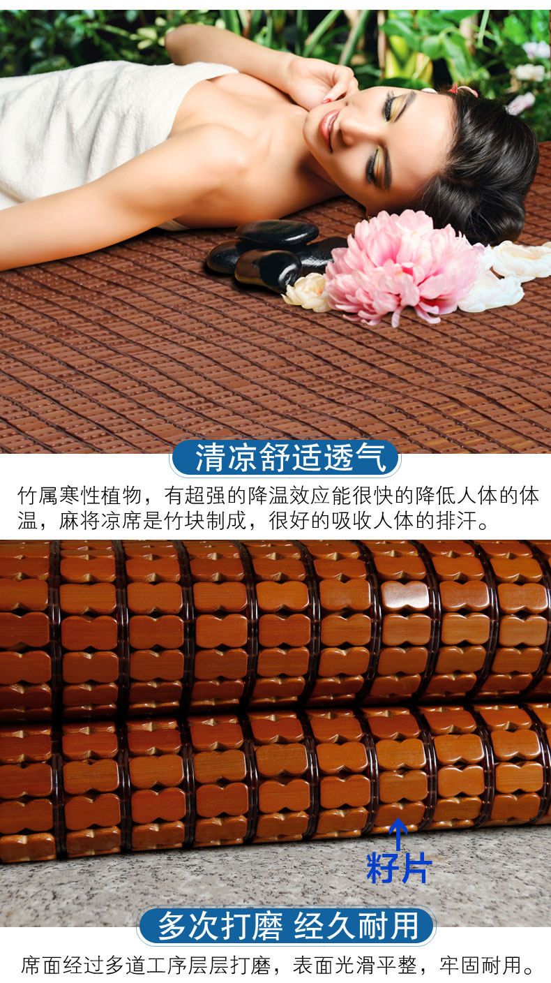 关于颜色:碳烧凉席不同于传统工艺蒸煮染色剂熬制出来的凉席,席面颜色为熏烤古典色,有古典存旧感,竹片间有可能有色差,另外不同件、不同批次生产的竹片也有可能有色差,即不同件凉席颜色有可能有深浅。