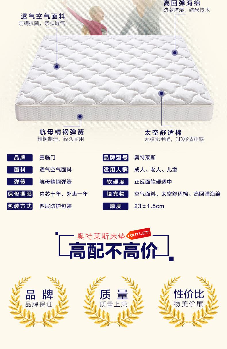 喜临门床垫旗舰店正品儿童床垫棕垫天然椰棕席梦思偏硬1.2米1.5米