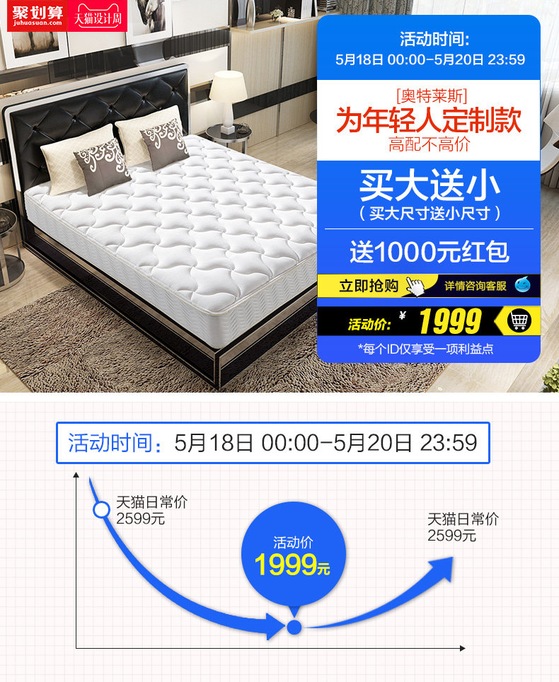 喜临门5cm进口天然乳胶床垫静音独袋弹簧席梦思星级酒店床垫1.8米