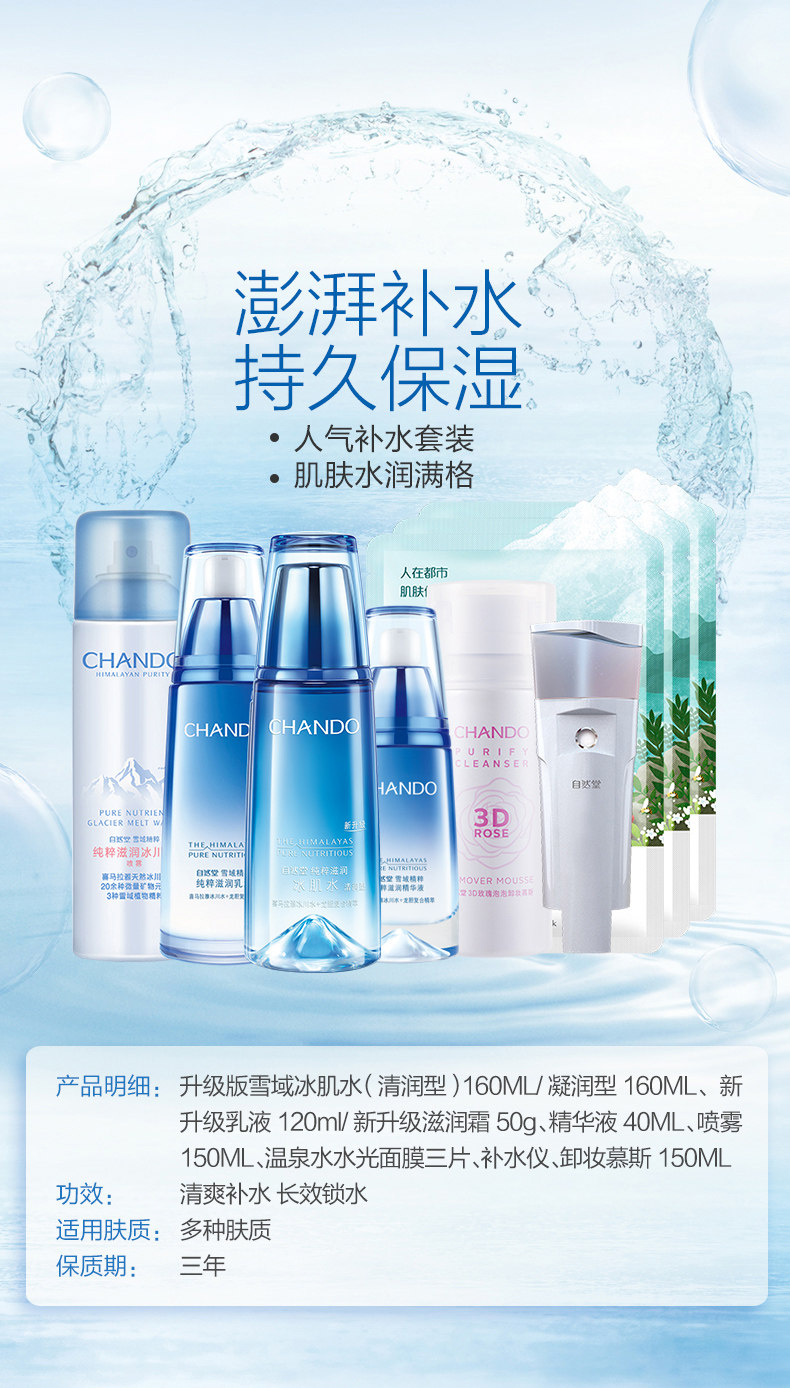 CHANDO/自然堂水润保湿柔肤乳 清透补水保湿乳液 旗舰店专柜正品