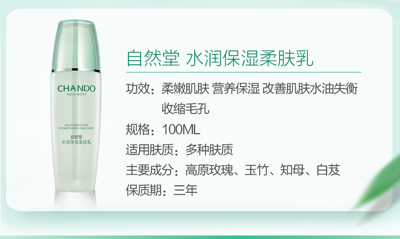 CHANDO/自然堂水润保湿柔肤乳 清透补水保湿乳液 旗舰店专柜正品