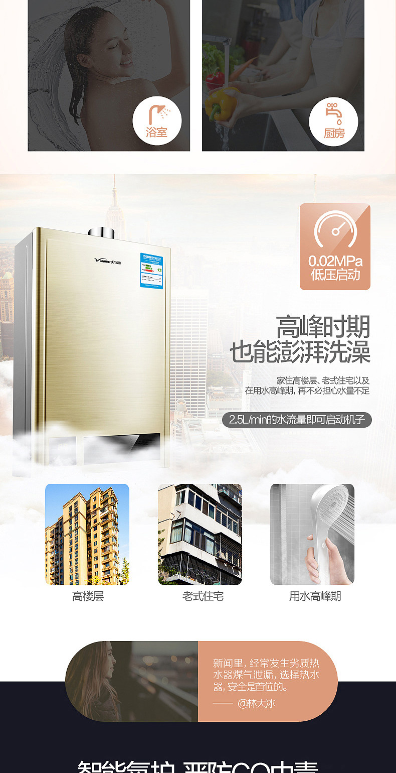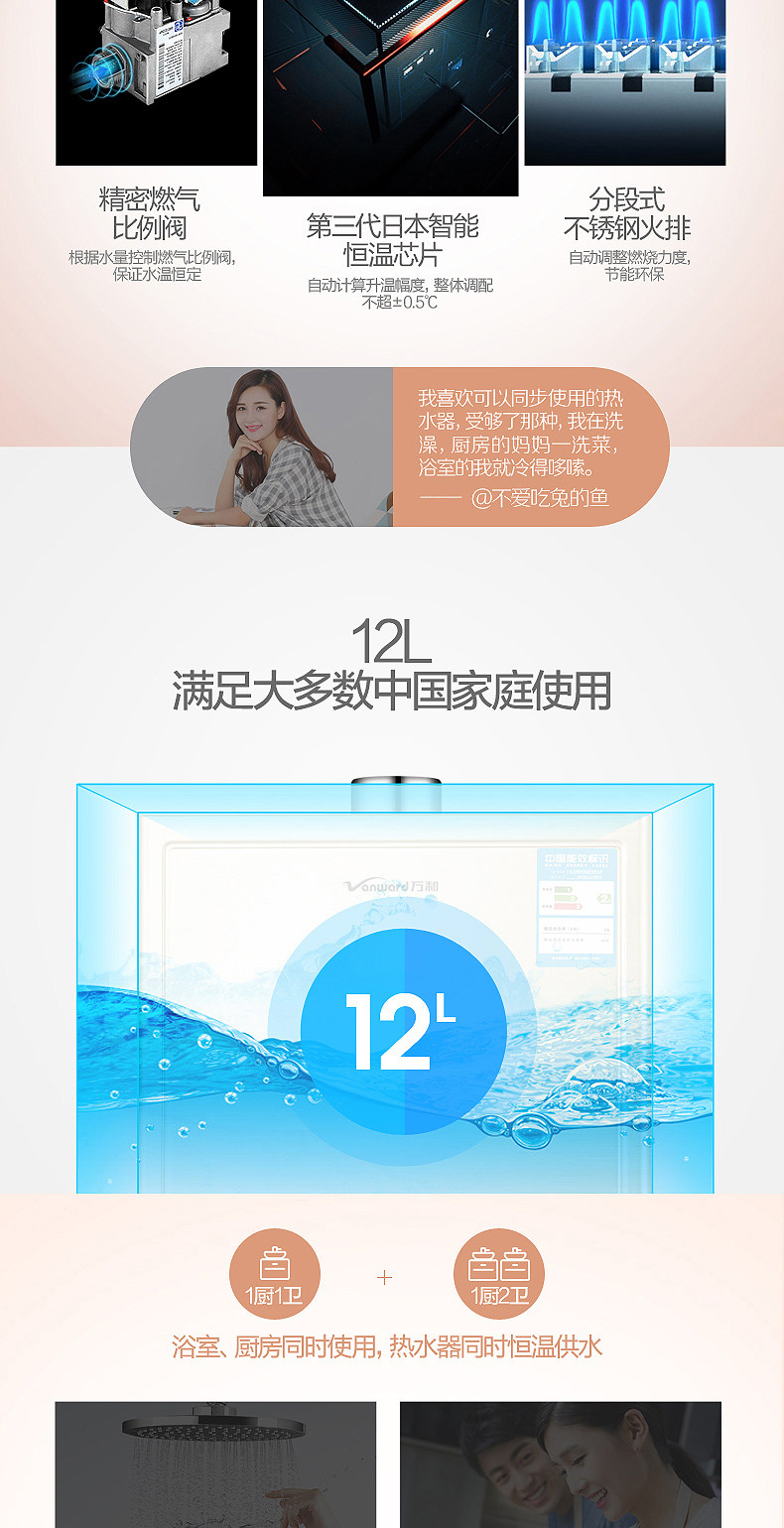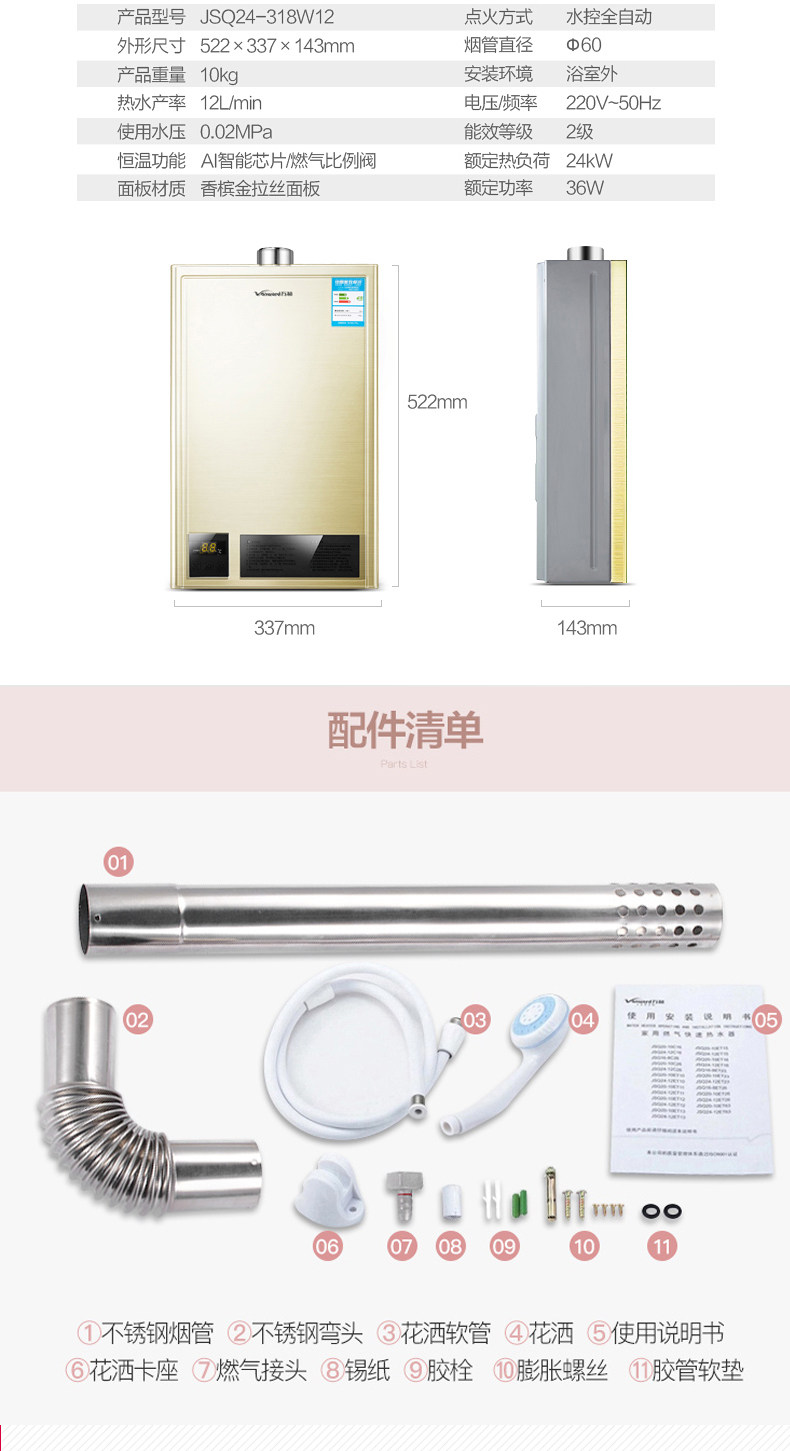 Vanward/万和 JSQ30-535T16升水气双调恒温强排式天然燃气热水器