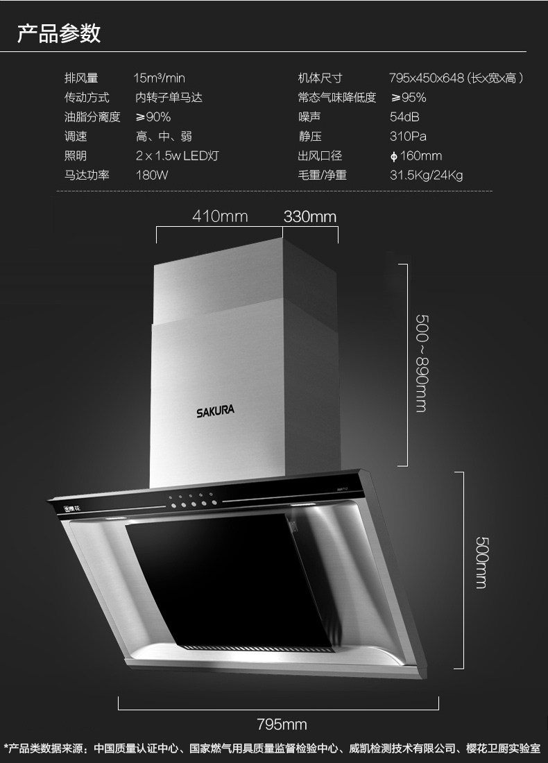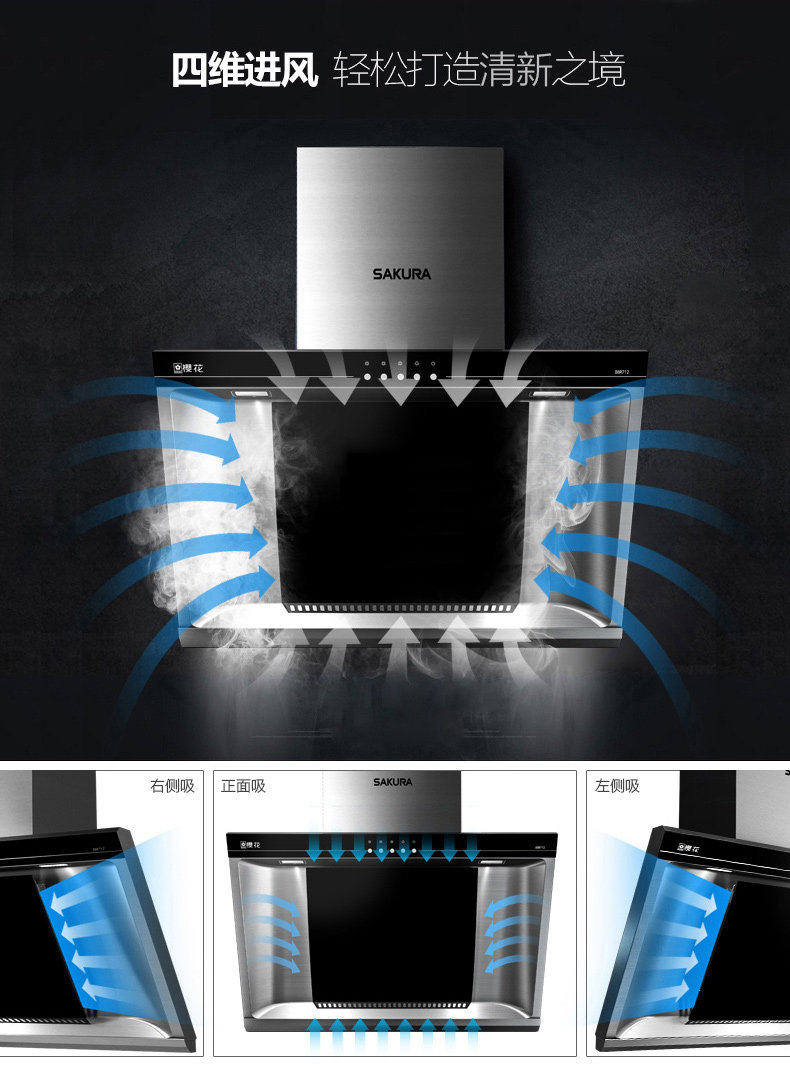 Sakura/樱花 CXW-180-103 侧吸式不锈钢吸抽油烟机家用大吸力