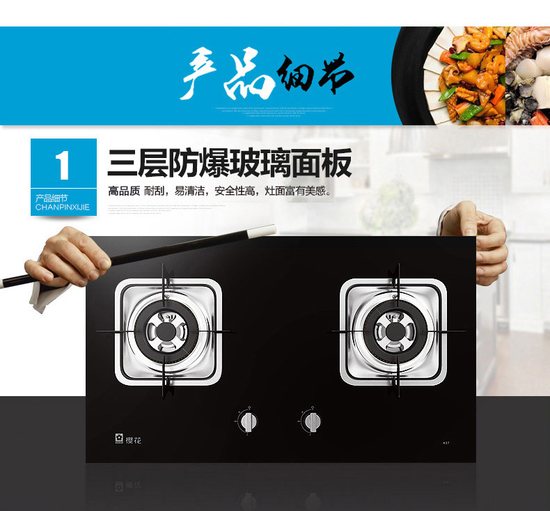 Sakura/樱花 A36嵌入式不锈钢大火力4.2kw燃气灶灶具多重防护家用