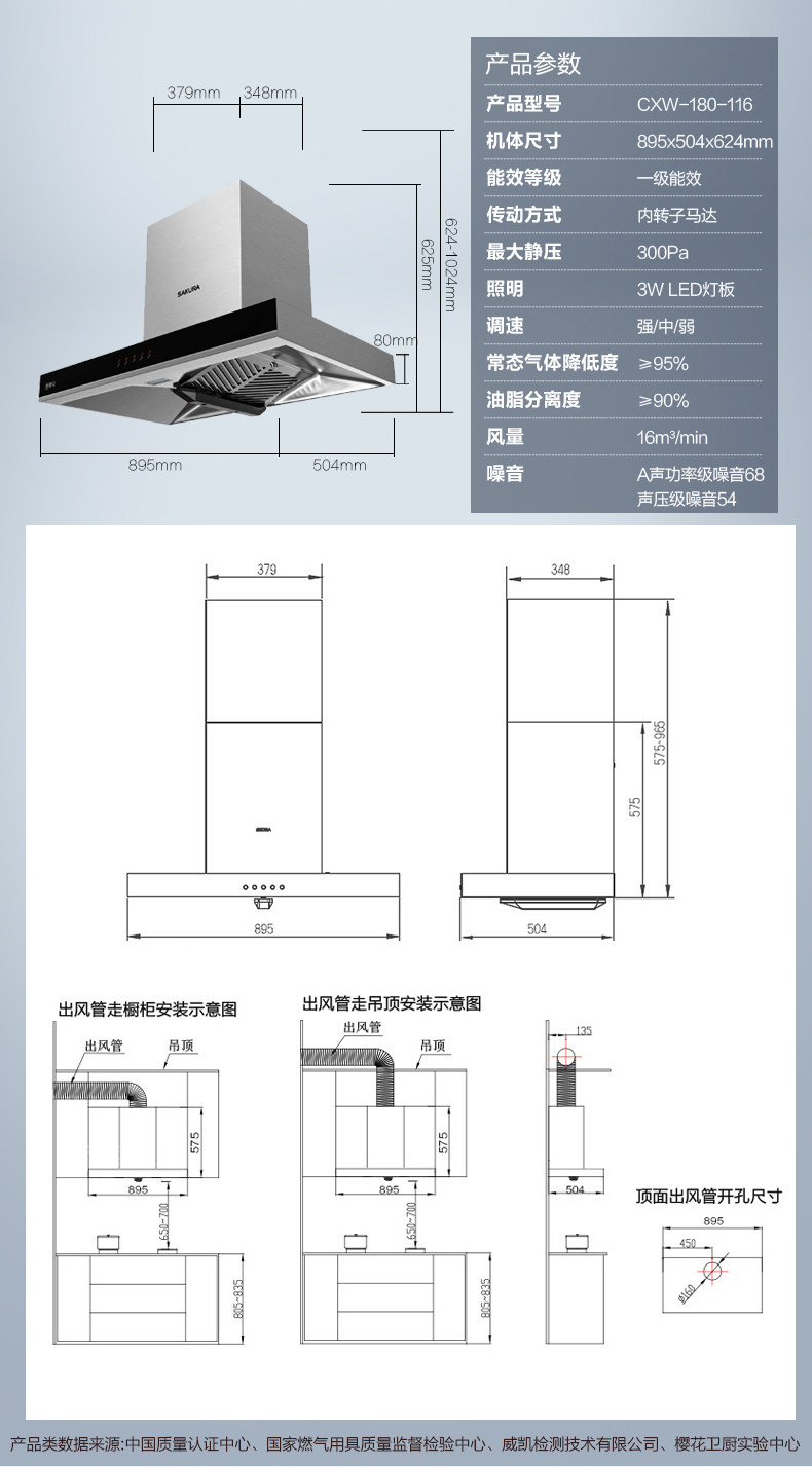 Sakura/樱花 CXW-180-116 16立方大吸力欧式吸顶式吸抽油烟机家用