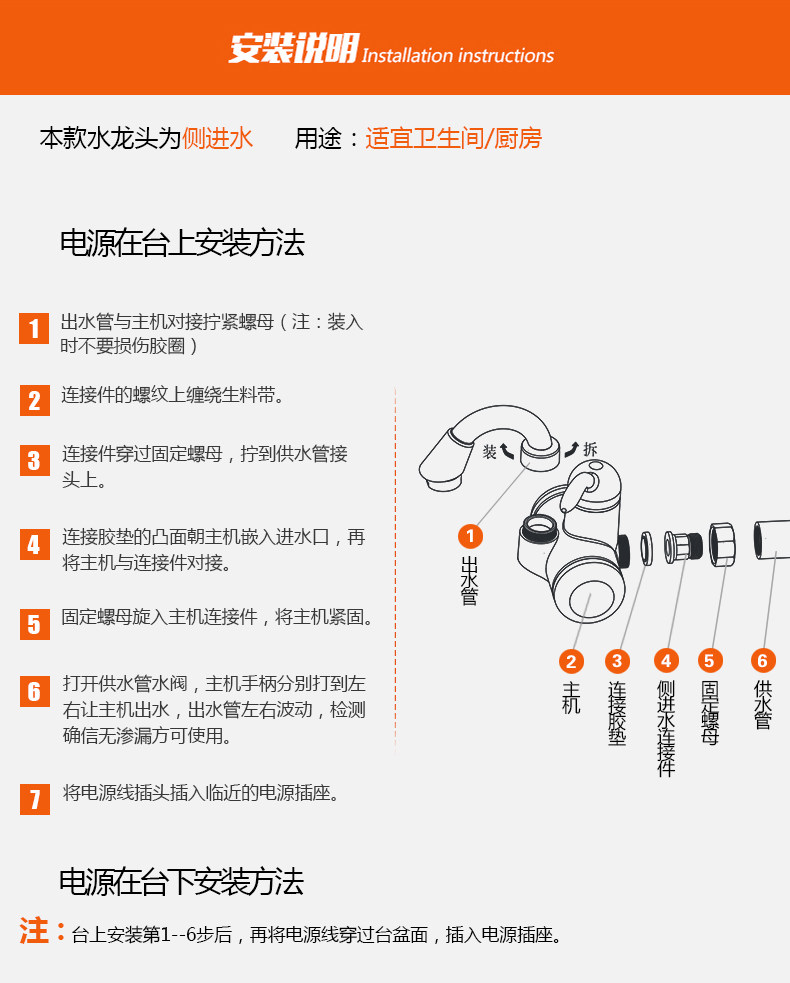 飞羽 FY-04SX2X-30即热式电热水龙头5秒热管式洗涤宝下进水龙头