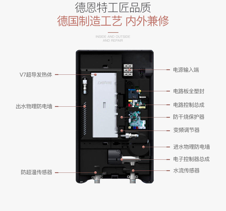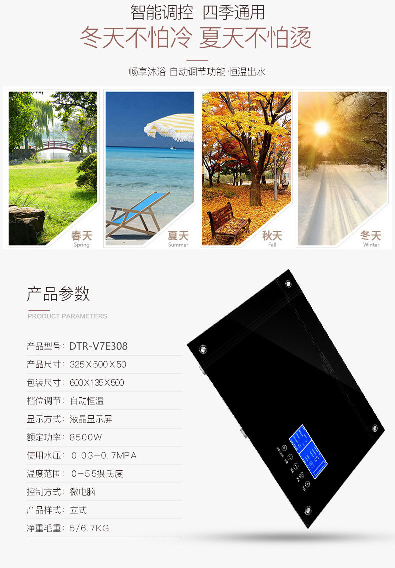 DENTE/德恩特DTR-703H 即热式电热水器 超薄家用恒温洗澡热水器