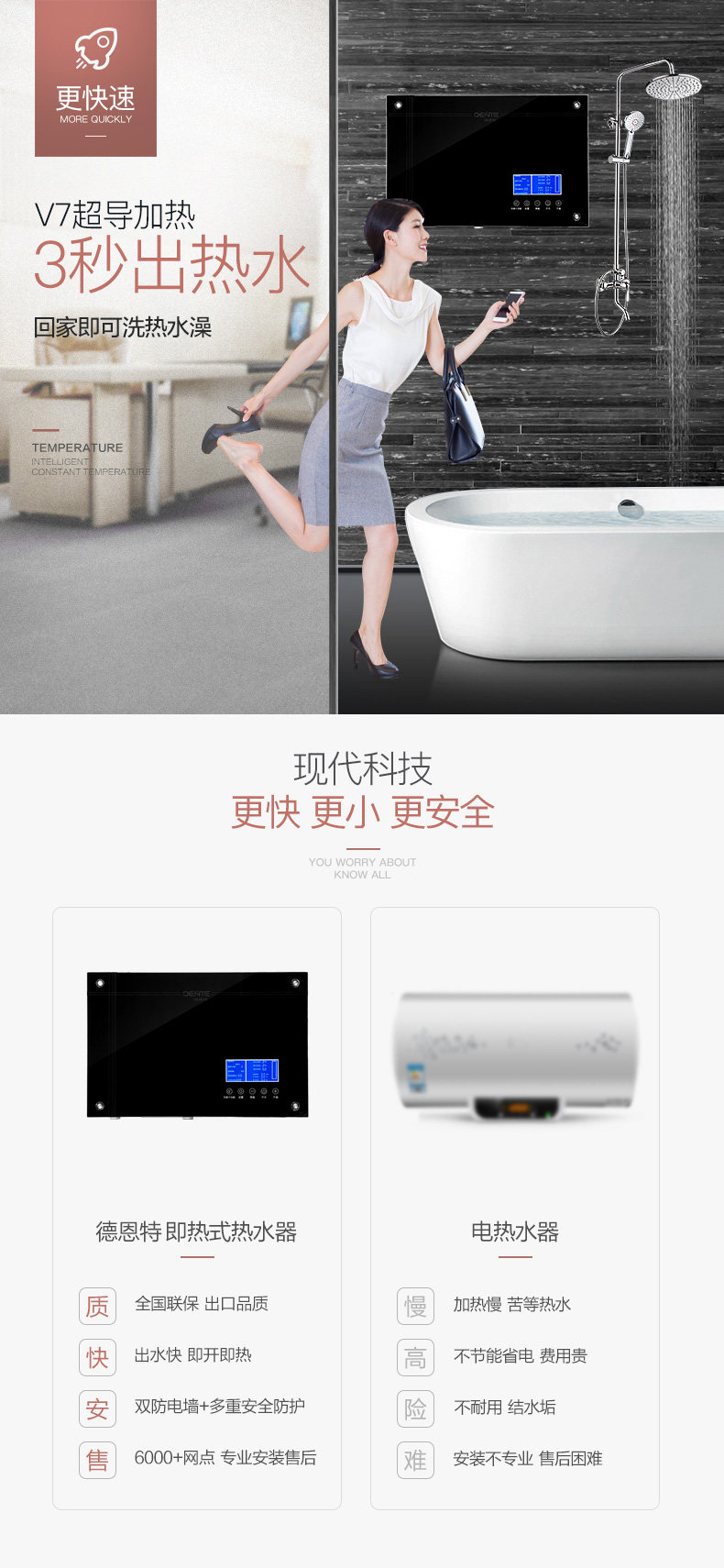 DENTE/德恩特 DTR-303H快速即热式电热水器 家用洗澡恒温加热洗澡