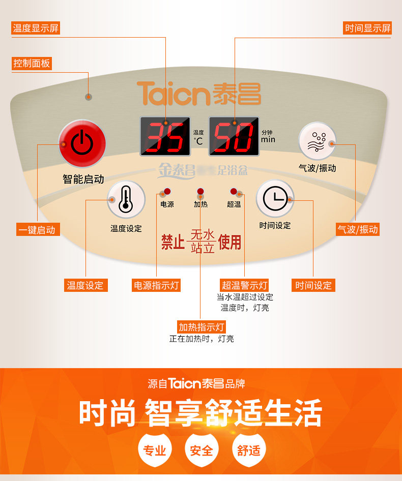 金泰昌TC-2053足浴盆冲浪加热按摩洗脚盆深桶更舒适 安全之星