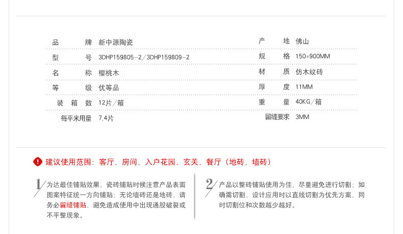 新中源木纹地砖简约瓷砖150x600卧室仿实木地板砖经典红杉156011