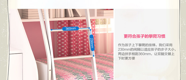 1、高低床包含【上下床+书架+挂梯】,不含梯柜、拖箱,若需购买组合套装,请选择套装下单;