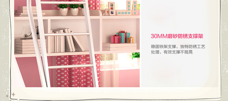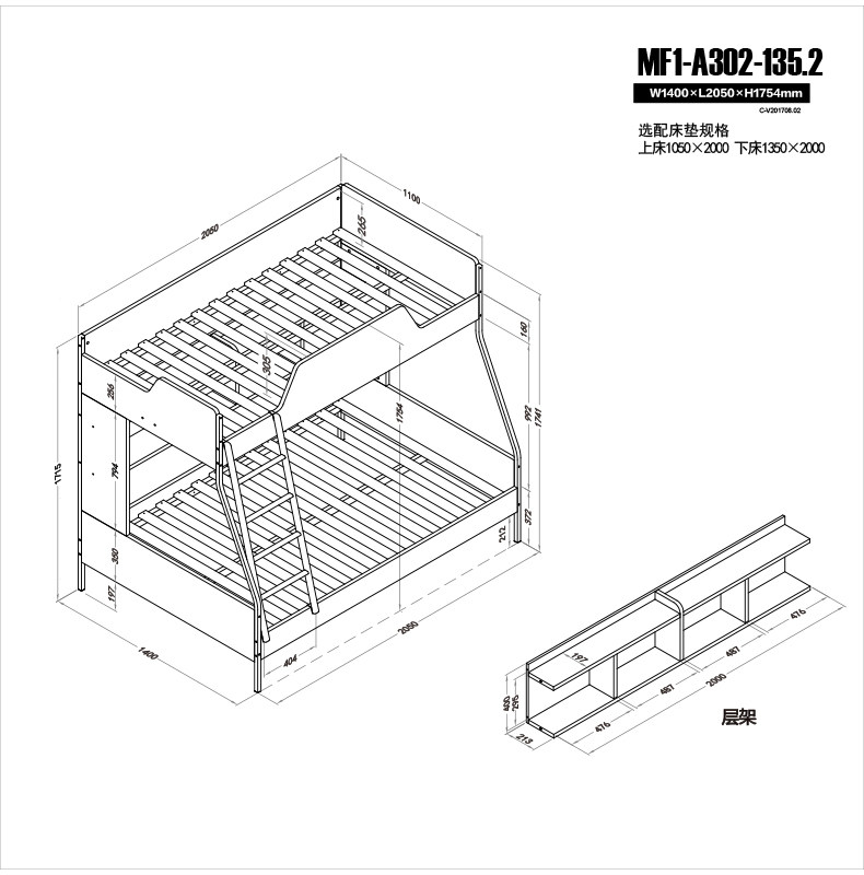 | 高低床包含: | 【上层床】+【下层床】+【储物书架】+【金属磨砂银灰色挂梯】(不含梯柜、拖箱) | |||