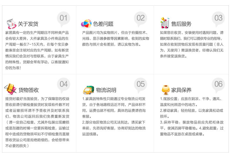| 【温馨提示】 | 1、安装:包装内配有安装图纸,客户可自行安装;如有疑问请致电售后电话4007766288! 忌与酸,碱性的化学物品接触表面! 3、由于家具在购买、运输、签收、安装、售后的特殊性,请在拍货前,一定仔细阅读相关注意事项 或咨询客服!谢谢您的理解和支持! | |||