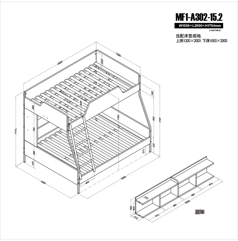 | 1.5米高低床 | H1760W1550L2050 | 0.598 | 156.1 | 5 |