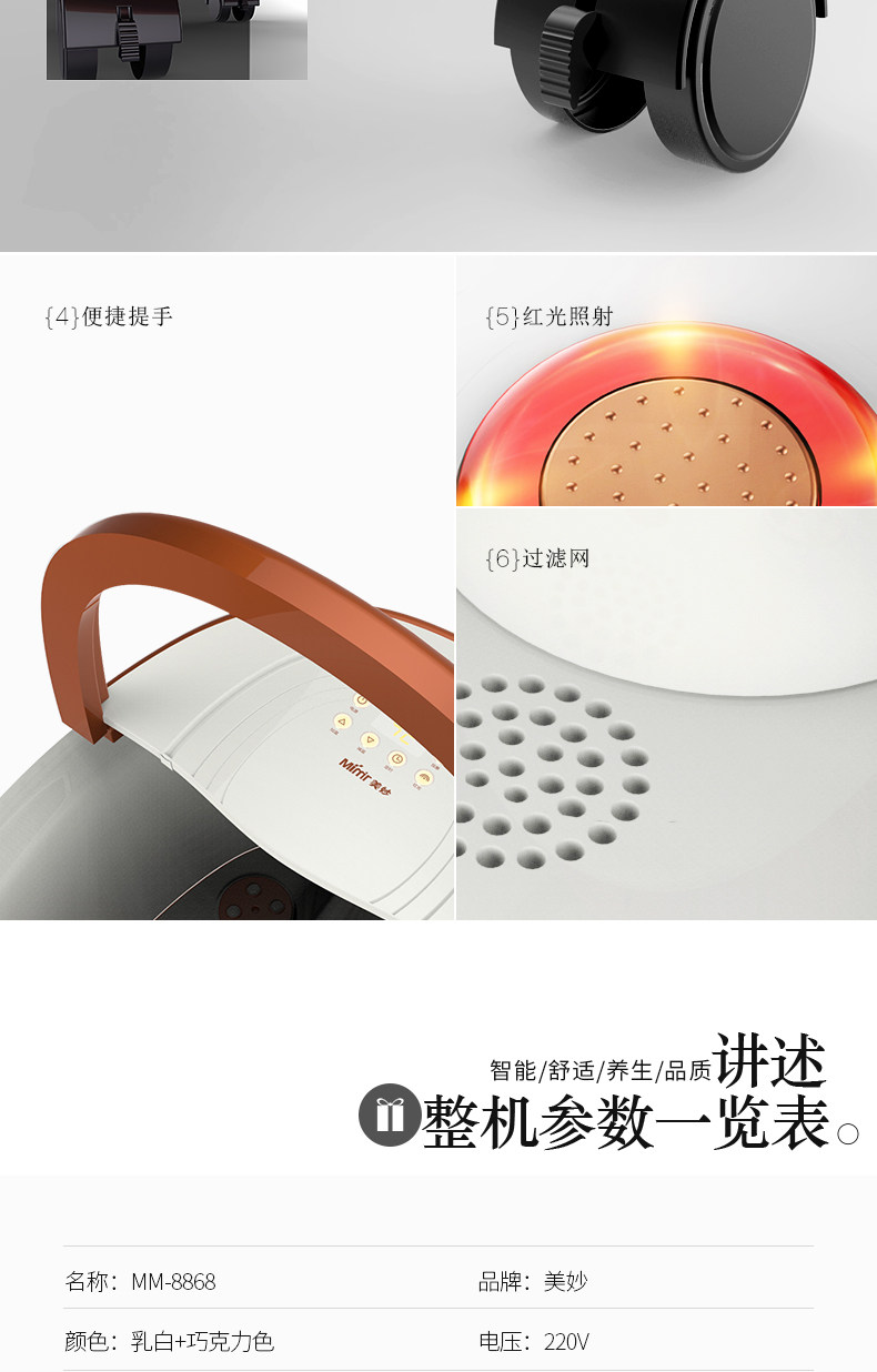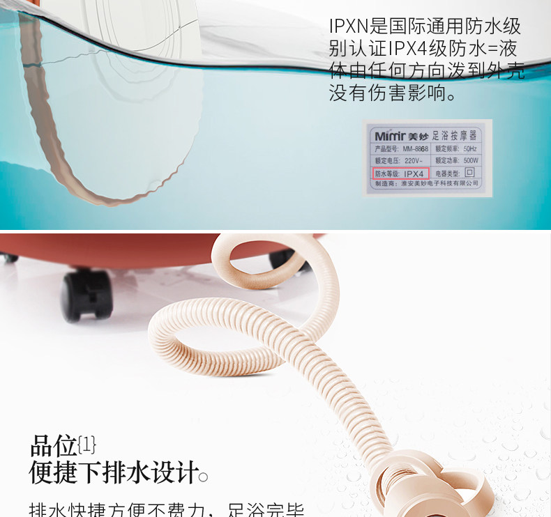 美妙足浴盆全自动加热泡脚盆脚动按摩器足疗机深桶泡脚器MM-8829