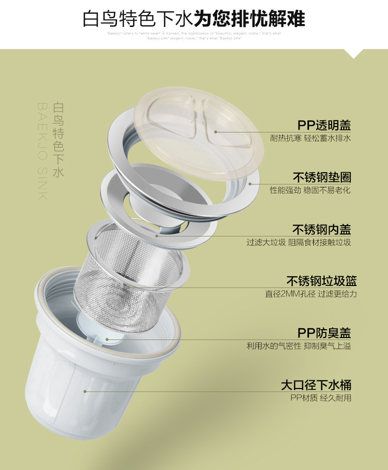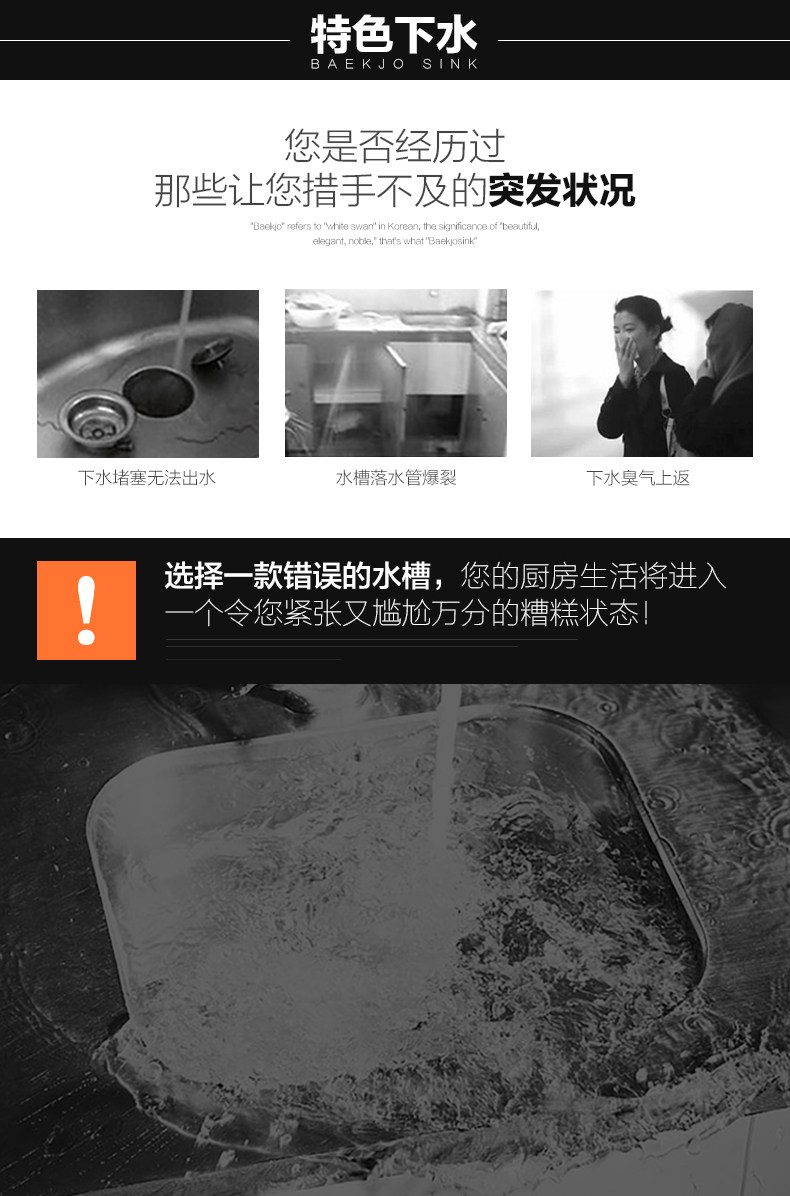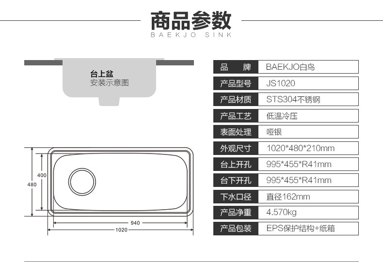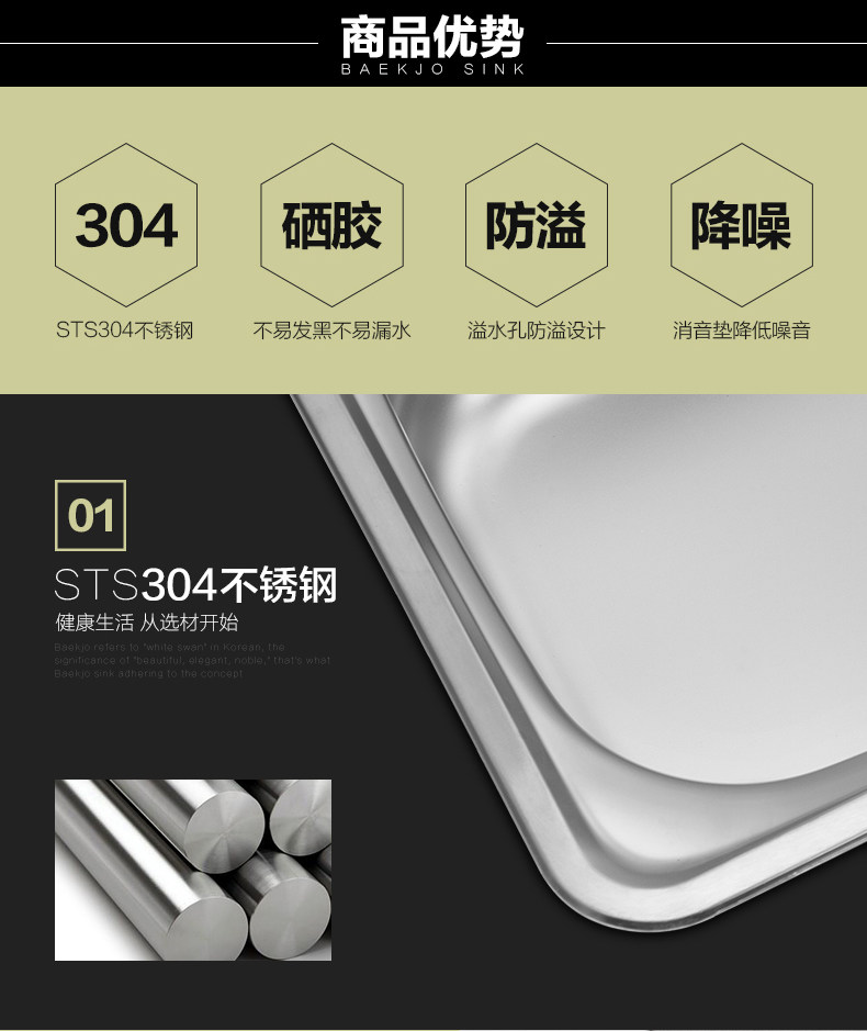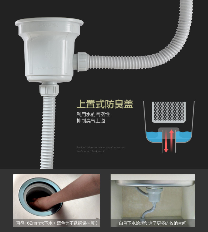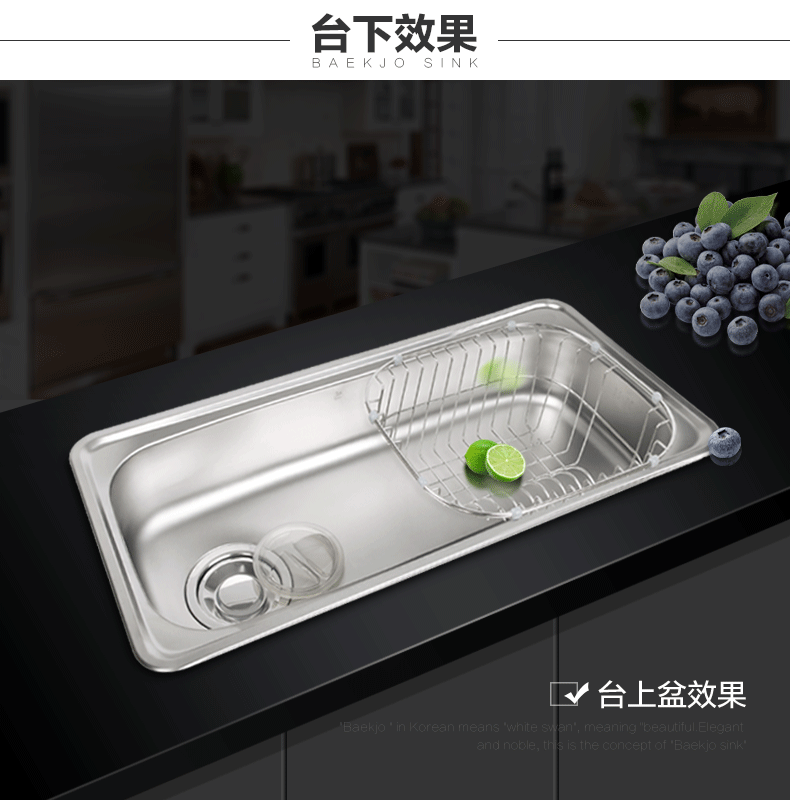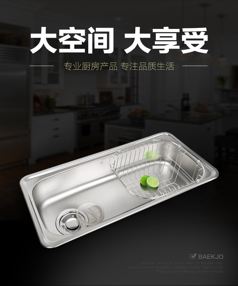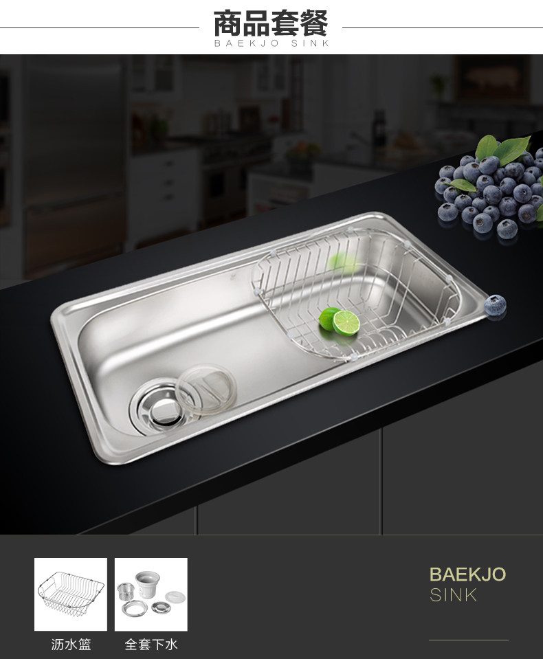 韩国白鸟水槽 304不锈钢单槽套餐 厨房洗菜盆OS800正品