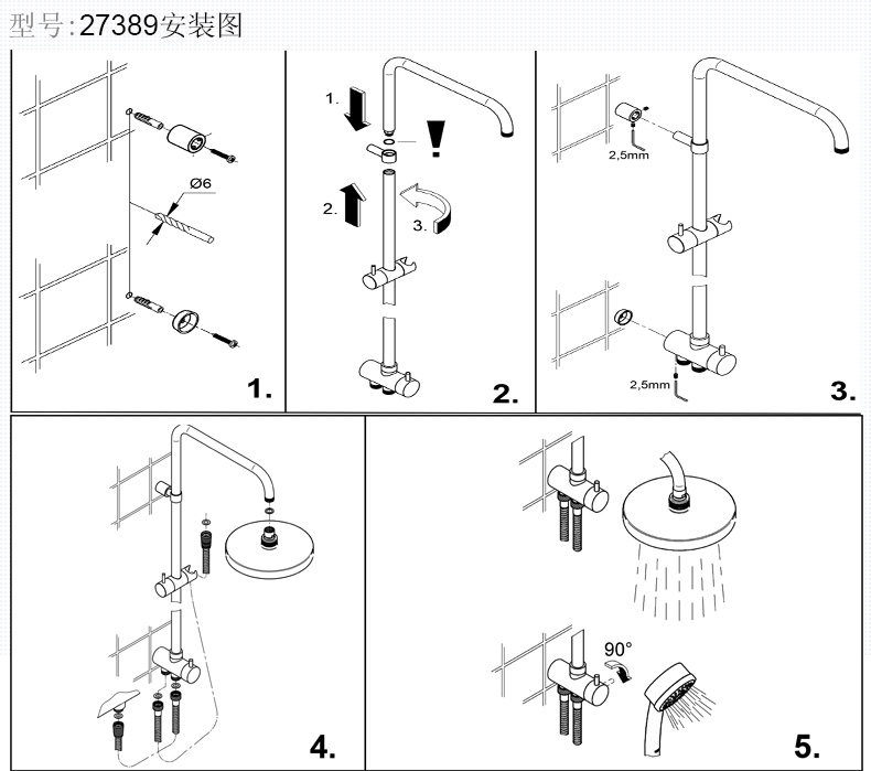 Grohe德国高仪 维达利雨淋式淋浴花洒套装沐浴花洒喷头套装