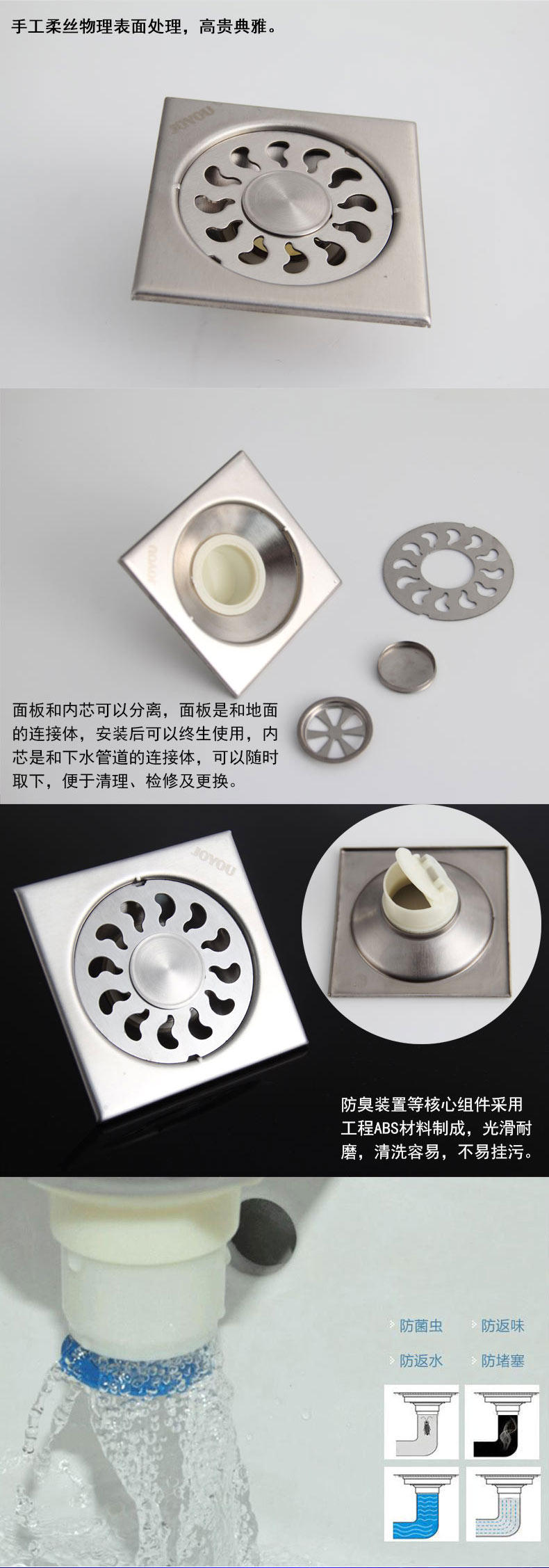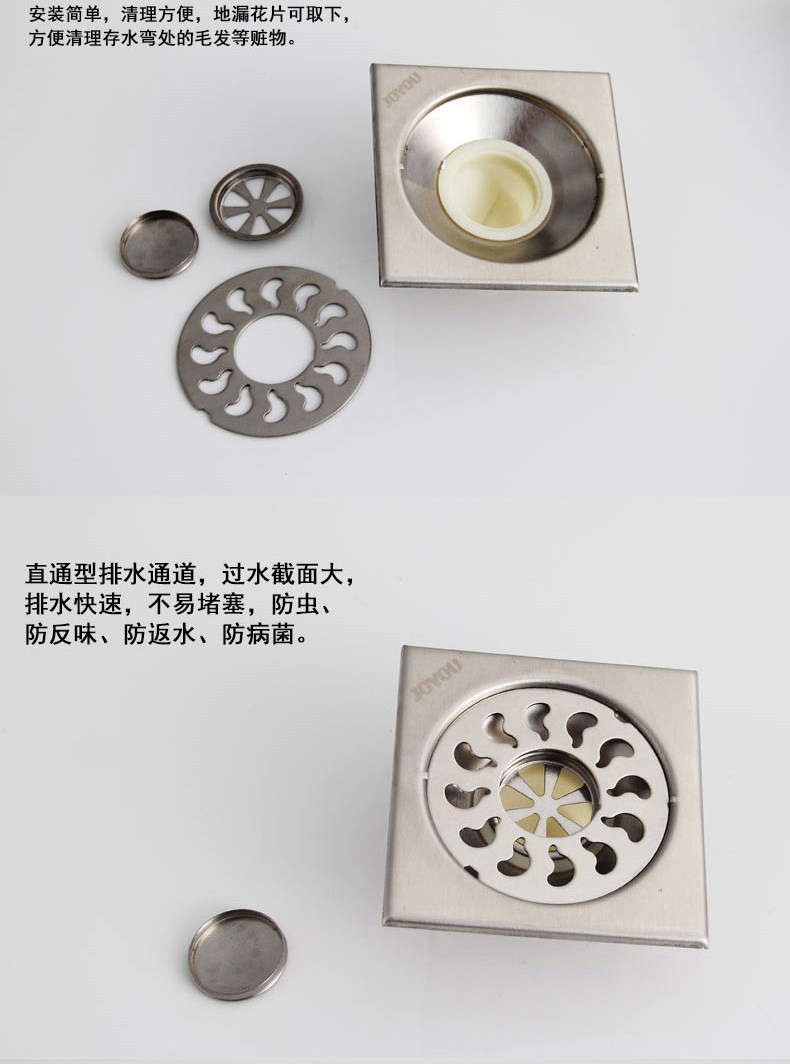 【产品组件】:地漏座、地漏盖