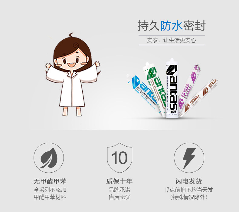 安泰293聚氨酯胶通用填缝胶马桶防霉胶洗手盆台密封楼顶补漏