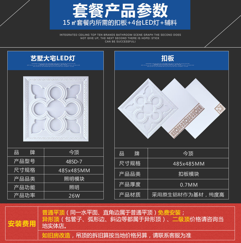 今顶集成吊顶 客厅全套铝扣板名门大宅吊顶 含LED灯 配件 包安装