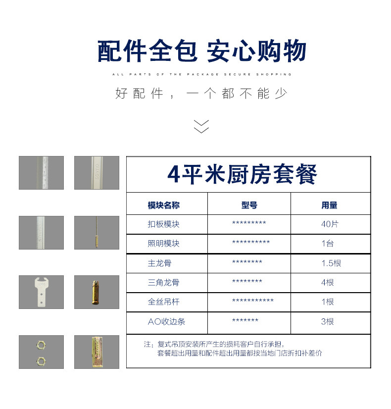 索菲尼洛复式吊顶 厨房4平方米套餐拱券系列集成吊顶含配件包安装