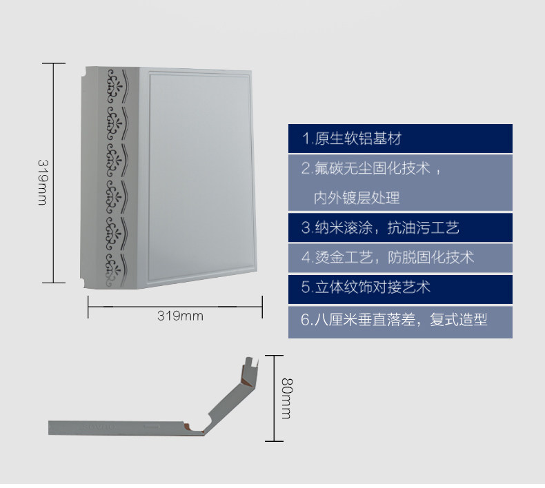 索菲尼洛复式吊顶 嵌入式天花板吊顶铝扣板 集成吊顶现代简约风格