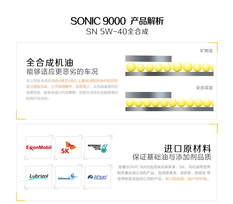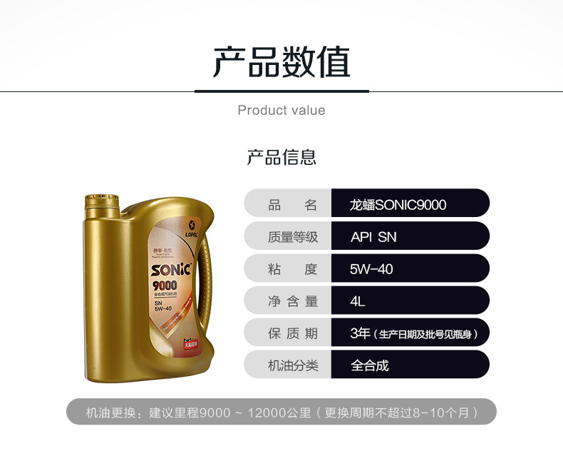 龙蟠正品全合成机油SONIC9000汽车发动机润滑油 SN5W-30 4L 包邮