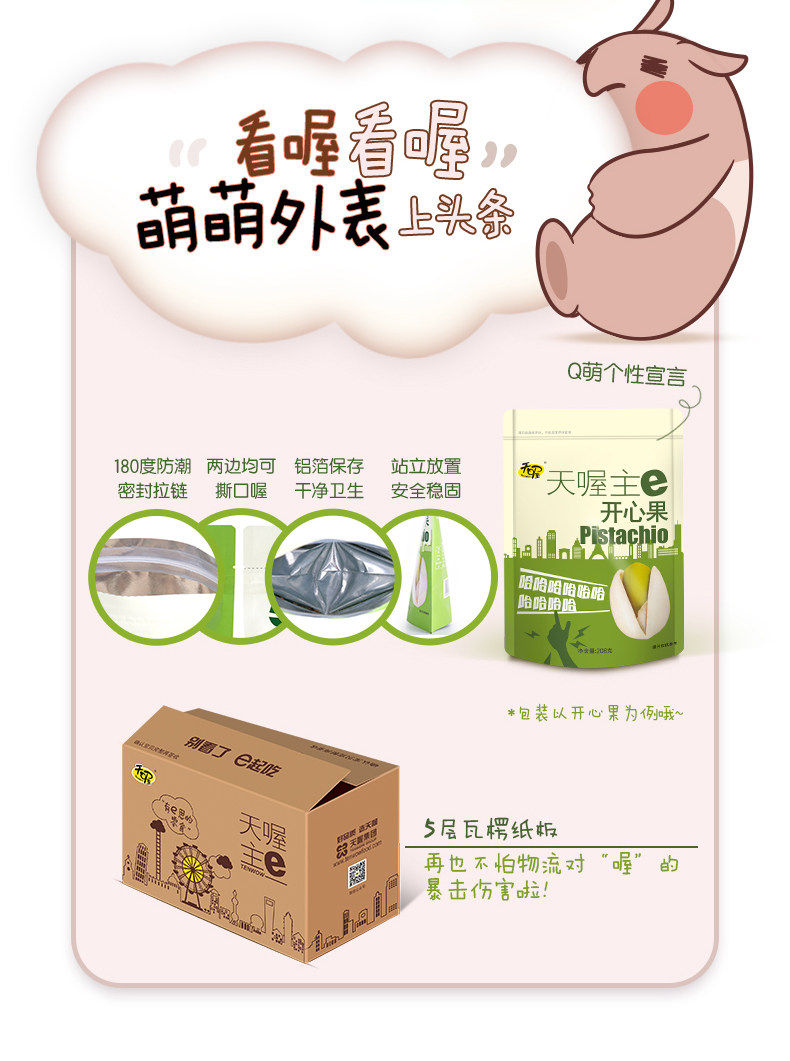 【天喔】开心果168g*1袋 休闲零食无漂白干果每日坚果炒货特产 改