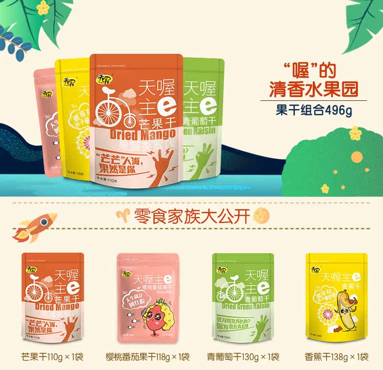 【天喔】蜜饯组合6袋708g 韩话梅盐津梅条桃肉水果干梅子休闲零食