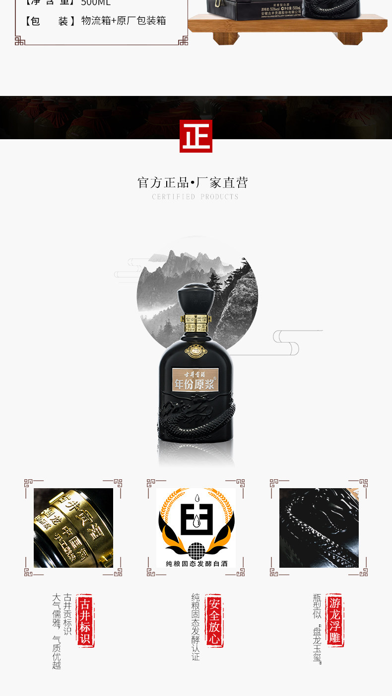 【酒厂自营】古井贡酒 50度60窖龄酒500ml粮食酒 浓香型白酒