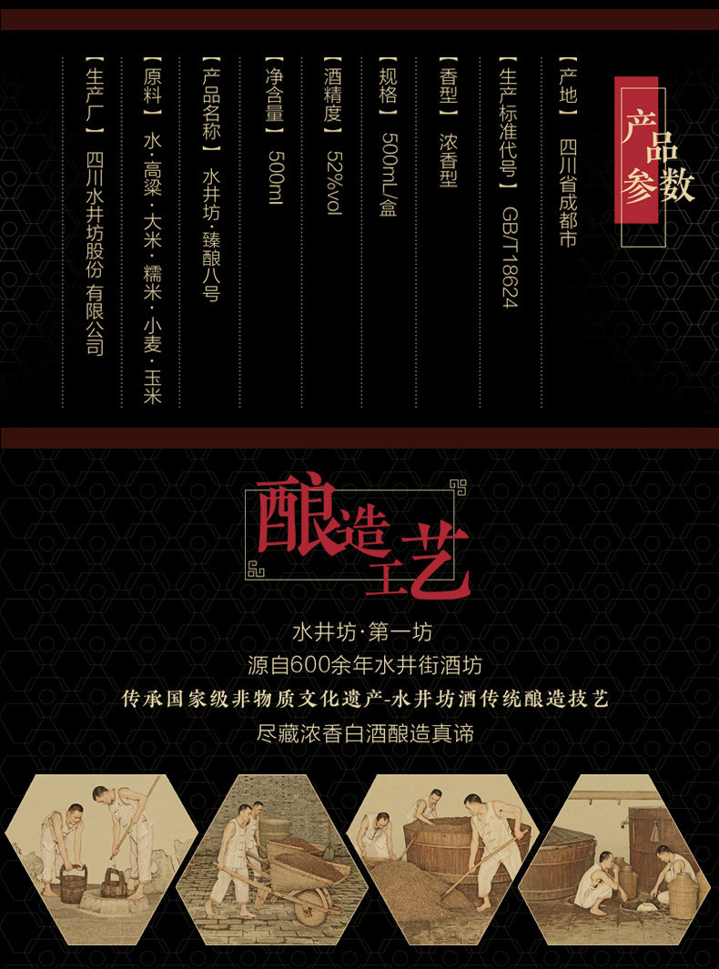 水井坊52度高度白酒特价臻酿八号500ml浓香型中国名酒包邮礼盒装