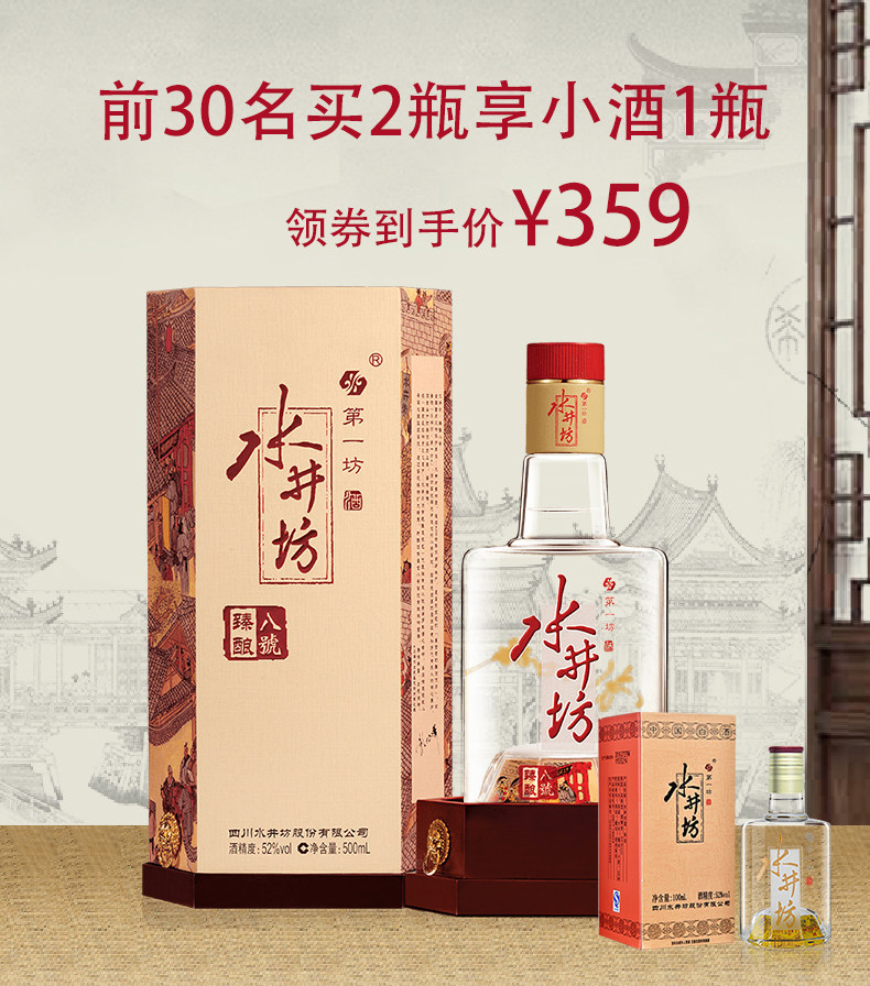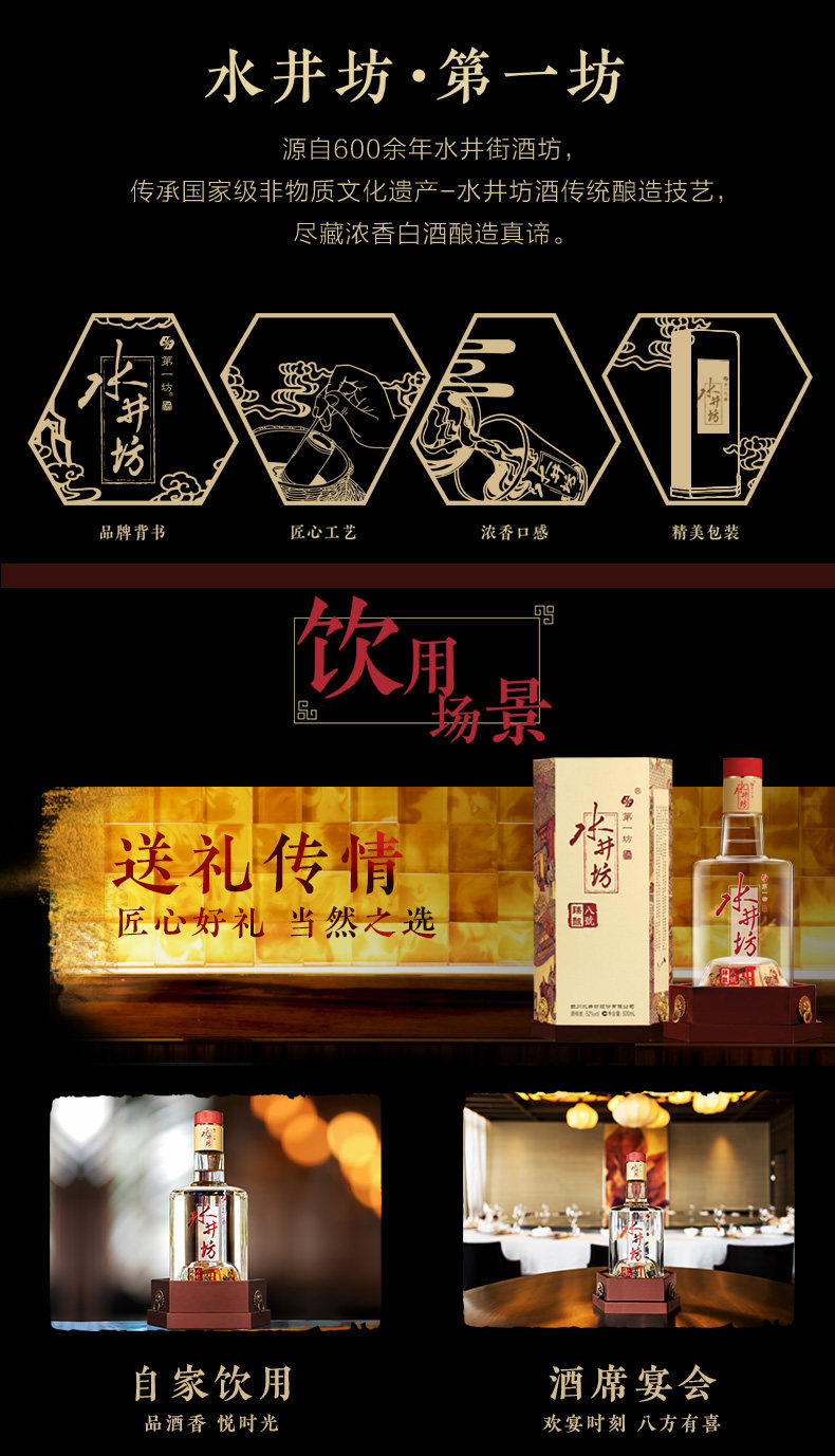 【酒厂自营】水井坊小水井52度浓香型500ml白酒礼盒装酒水包邮