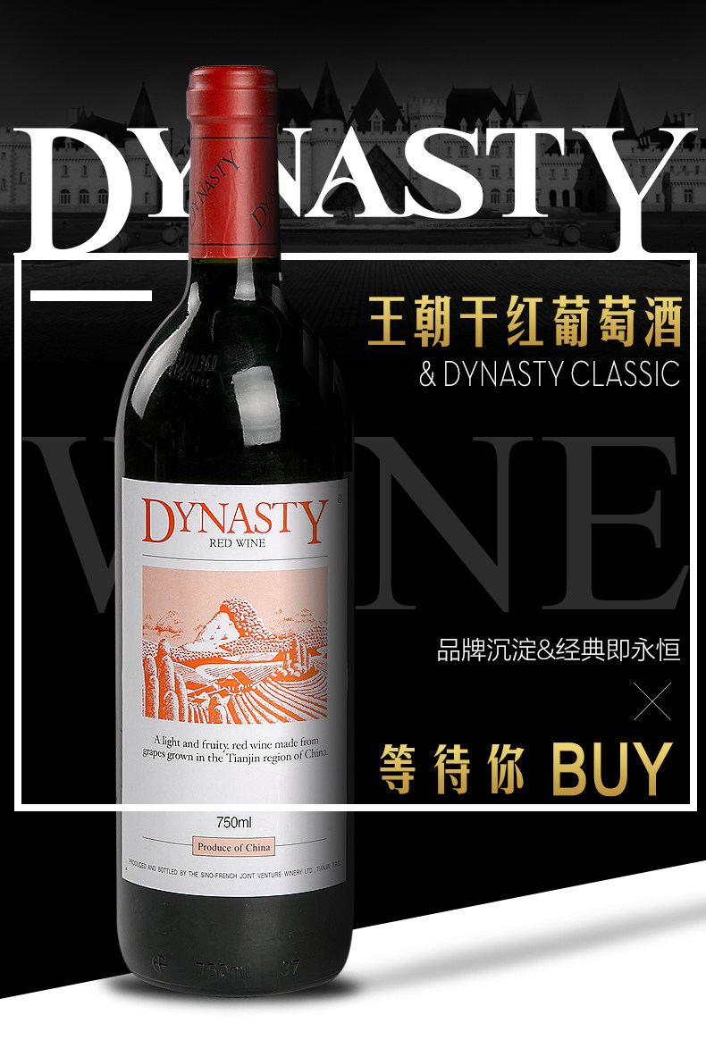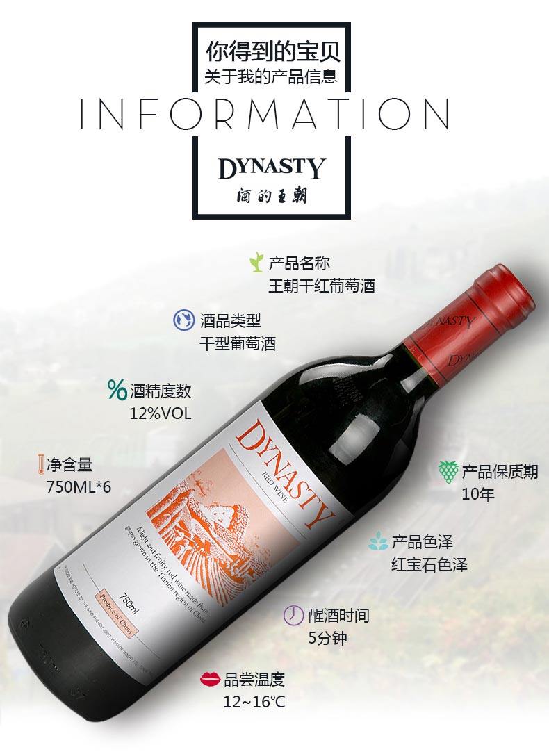 王朝红酒 中法合营王朝干红葡萄酒 DYNASTY王朝窖藏干红 750ml*6