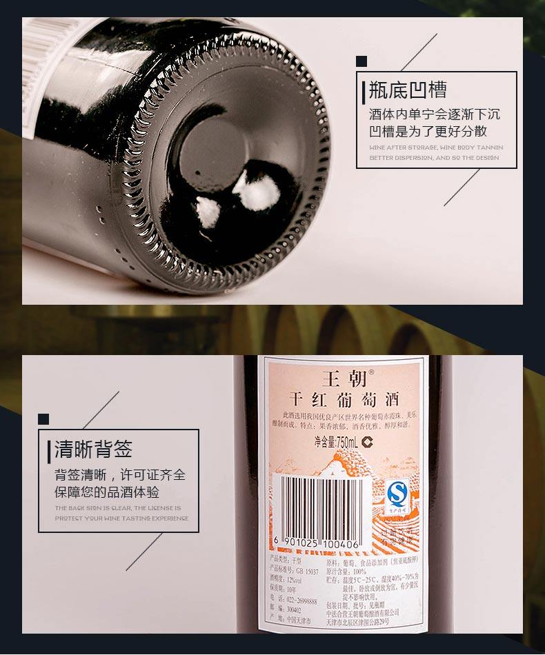 王朝珍藏橡木桶干红葡萄酒750ml婚宴赤霞珠国产红酒整箱6支装正品