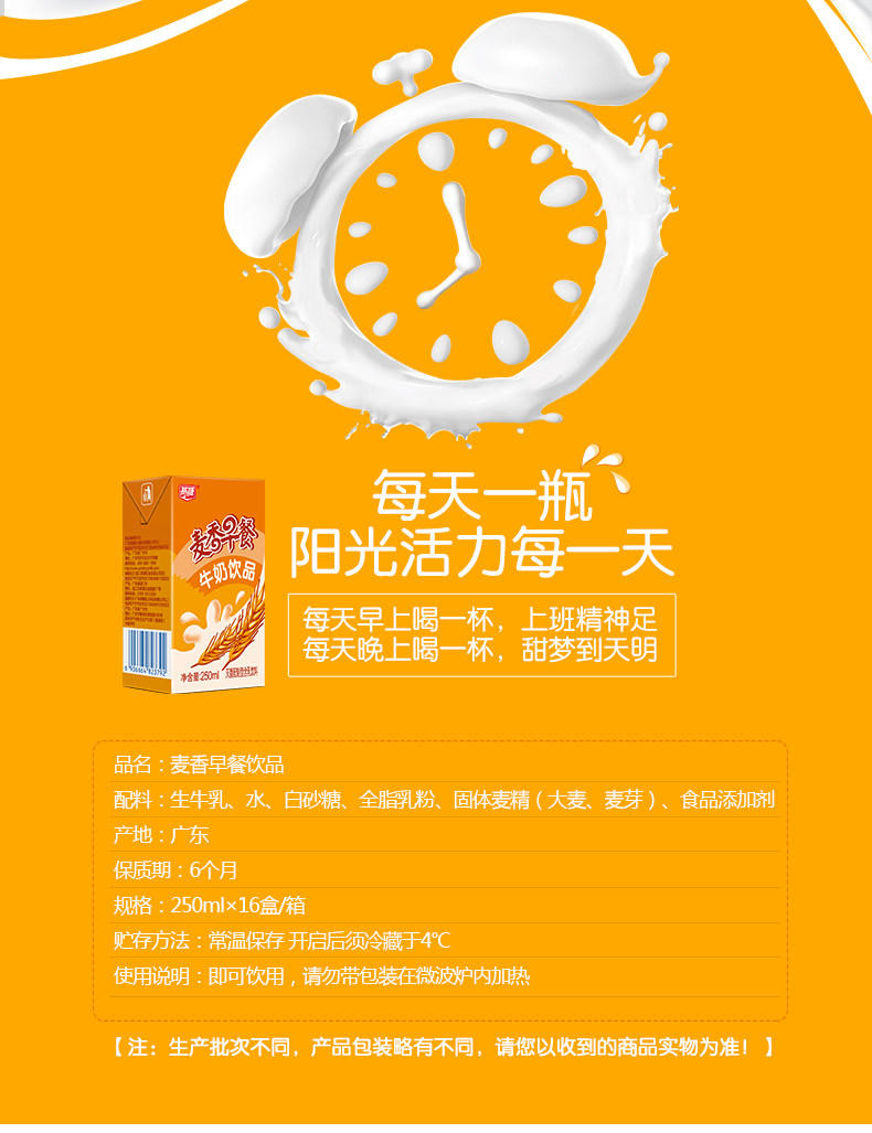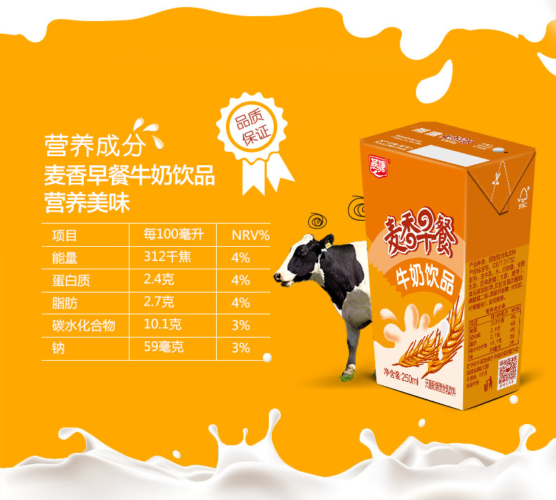 燕塘麦香早餐奶 儿童营养牛奶 整箱250ml*16盒