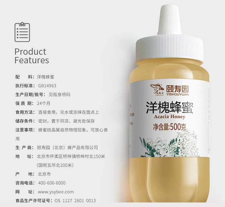 颐园牌 紫云英蜂蜜480g/瓶 玻璃瓶专利瓶口设计