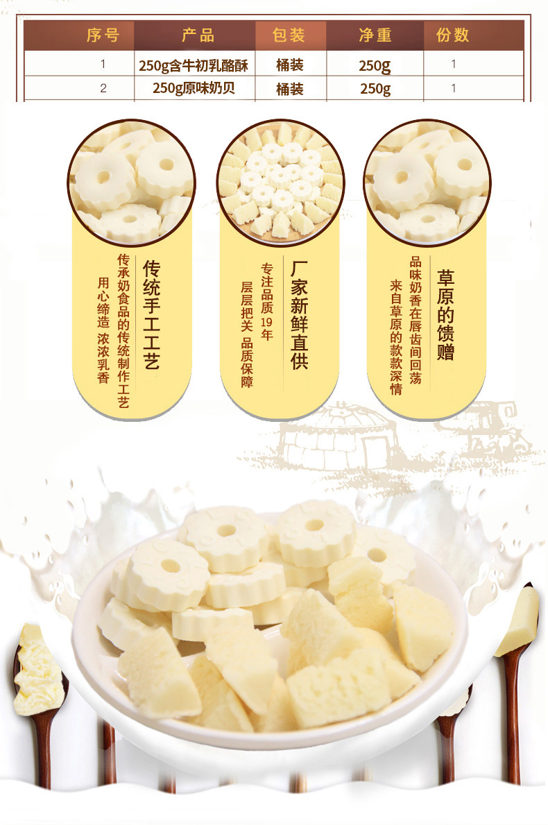 奶片内蒙古塔拉额吉高钙干吃组合250g*2 奶酪条奶豆腐特产零食