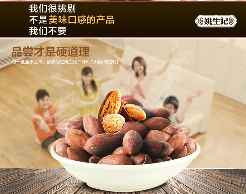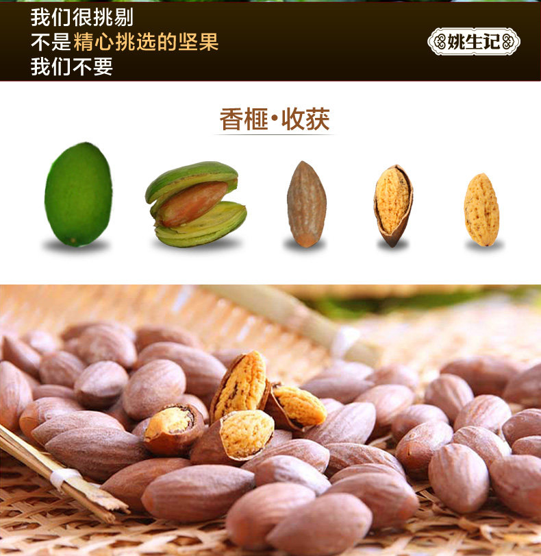 【姚生记 原香巴旦木120gX3】手剥扁桃仁坚果干果零食品炒货新货