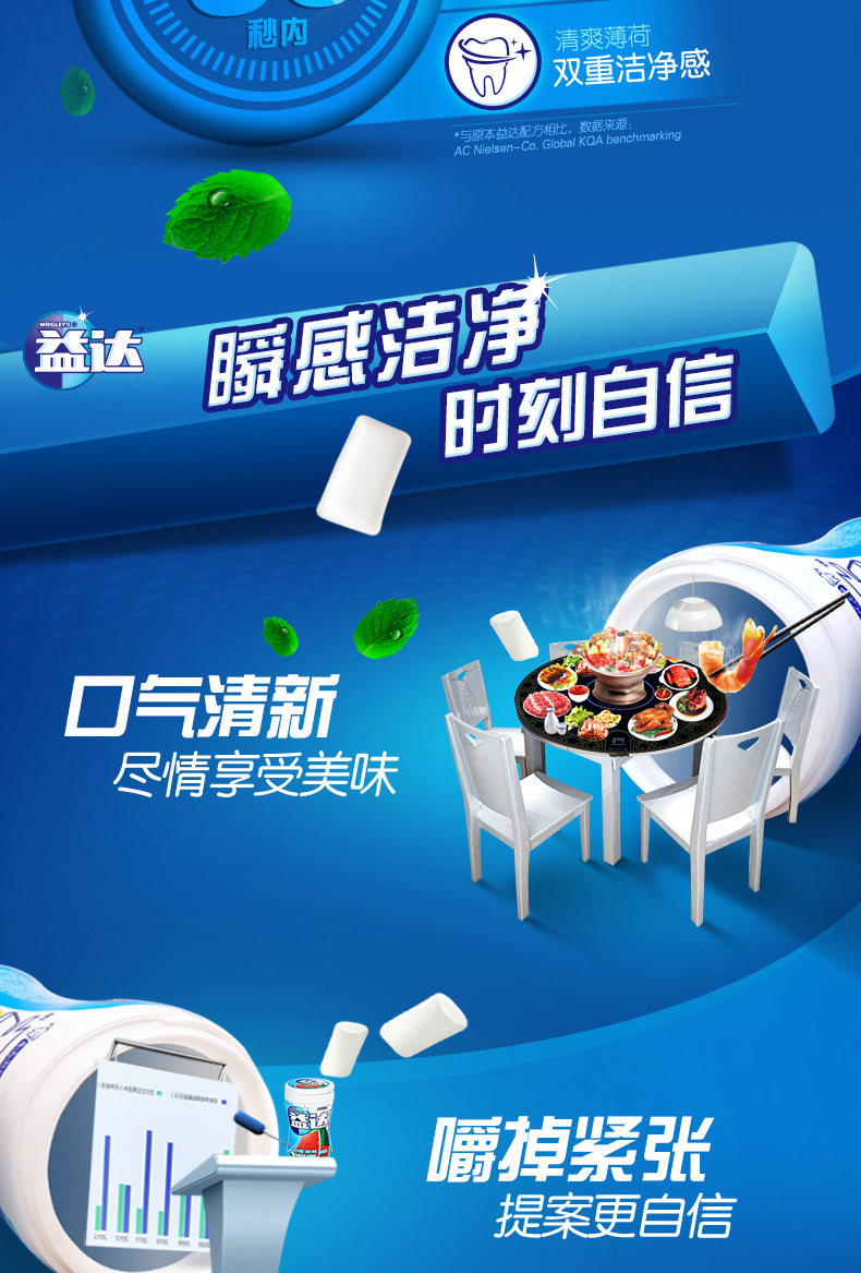 益达无糖口香糖木糖醇约40粒装56克清新口气洁齿护牙薄荷味糖果