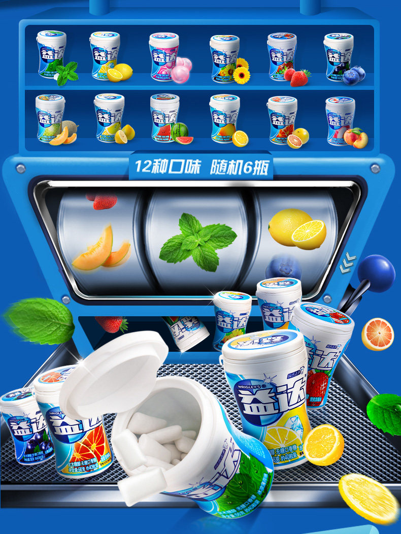 益达无糖木糖醇口香糖约70粒4种口味瓶装薄荷味零食糖果休闲食品