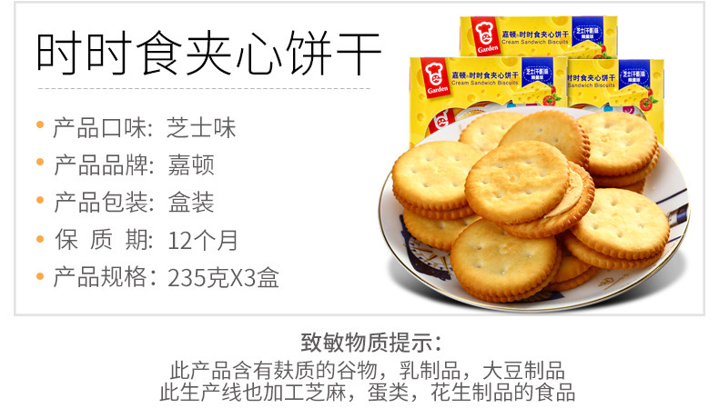 Garden/嘉顿原味梳打105克x6包办公室休闲下午茶零食小吃组合套餐