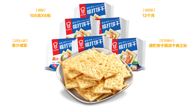 Garden/嘉顿原味梳打105克x6包办公室休闲下午茶零食小吃组合套餐