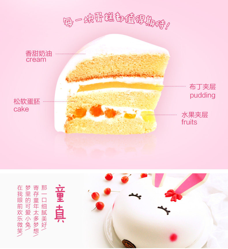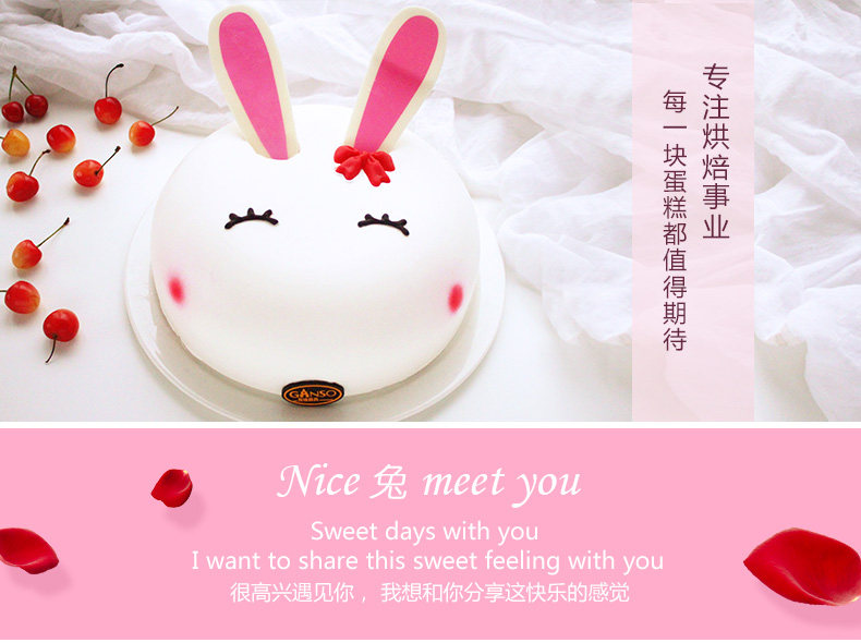 元祖上海北京广州杭州南京成都新奶儿童卡通兔子生日蛋糕同城配送