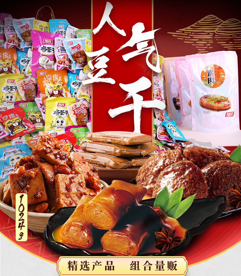 祖名卤汁逗干100g*5袋 豆腐干多口味散装零食500g 休闲豆干制品