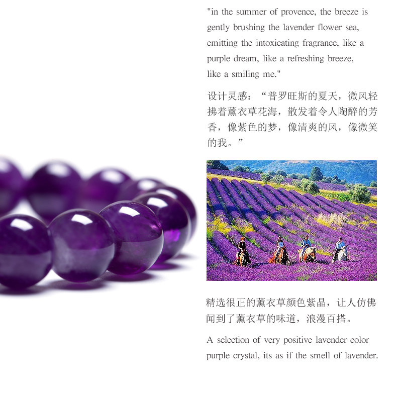 以下是普罗旺斯的夏天 紫晶手链冰裂紫水晶手串手珠礼物送女友晶石灵的详细说明,厂家介绍,求购联系信息,最终解释权归广州市晶灵宝石有限公司所有