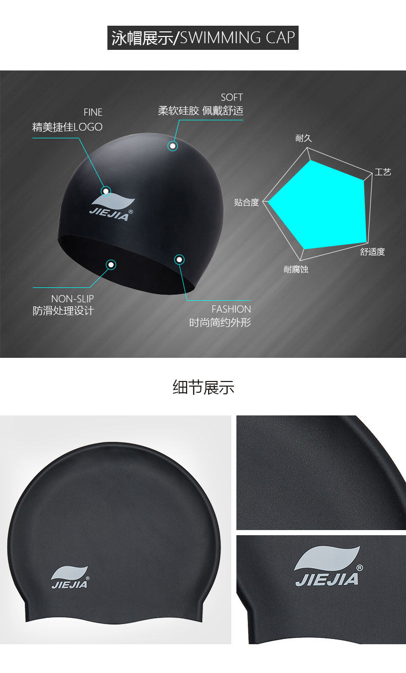捷佳游泳泳帽硅胶高防水男女通用成人大号游泳帽子弹力舒适温泉帽