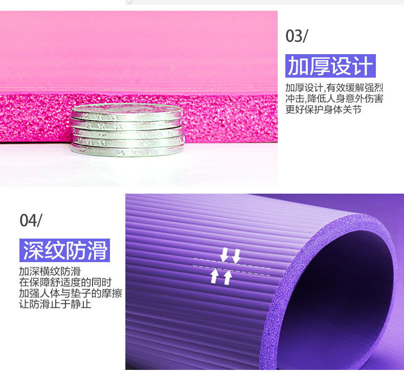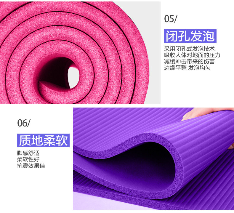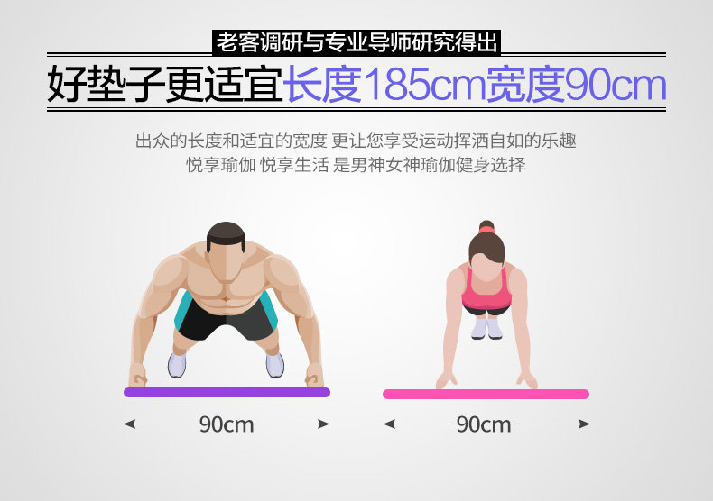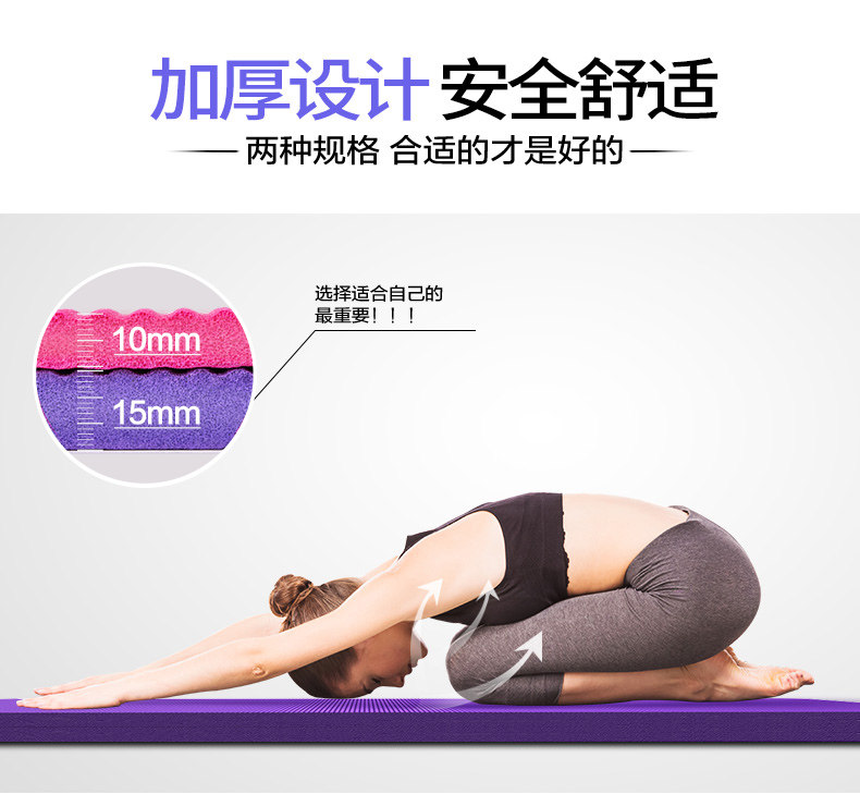 悦步瑜伽垫初学者10MM加长防滑健身垫子男女士加厚加宽无味三件套