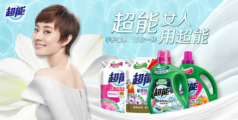 超能洗衣液植翠低泡鲜艳亮丽1kg/袋装补充装