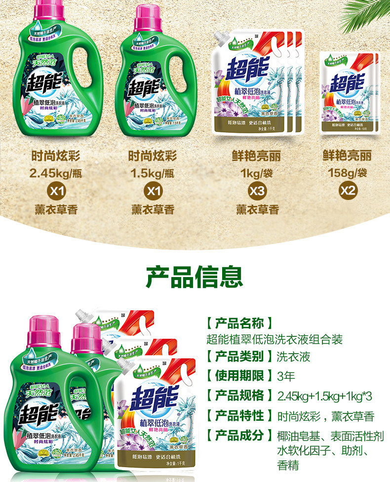 超能植翠低泡洗衣液1.5kg*2瓶特价促销家庭量贩装6斤组合