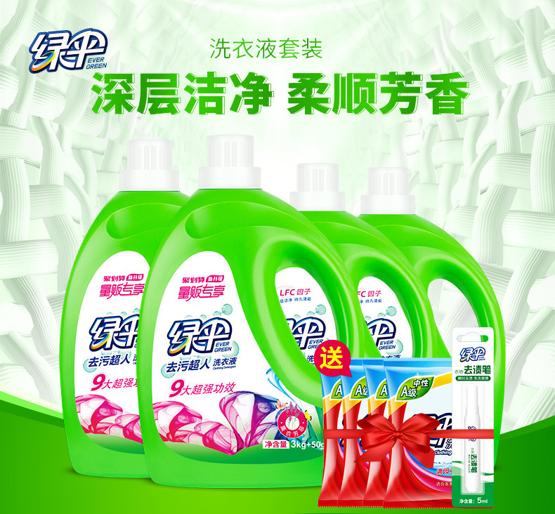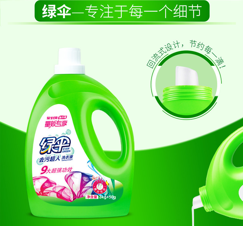 绿伞去污超人洗衣液4kg瓶装 持久玉兰幽香香型深层洁净低泡易漂洗